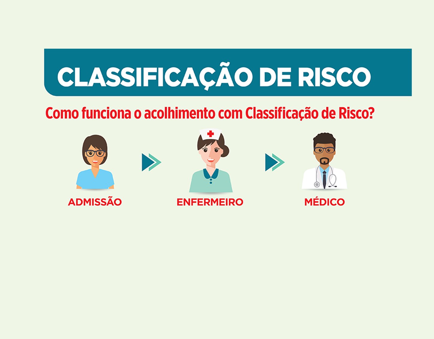No hospital, todos os pacientes passam por um processo de acolhimento com classificação de risco, que identifica o grau de gravidade de cada caso. A triagem é realizada por profissionais de enfermagem e classifica os pacientes conforme uma escala de cores: